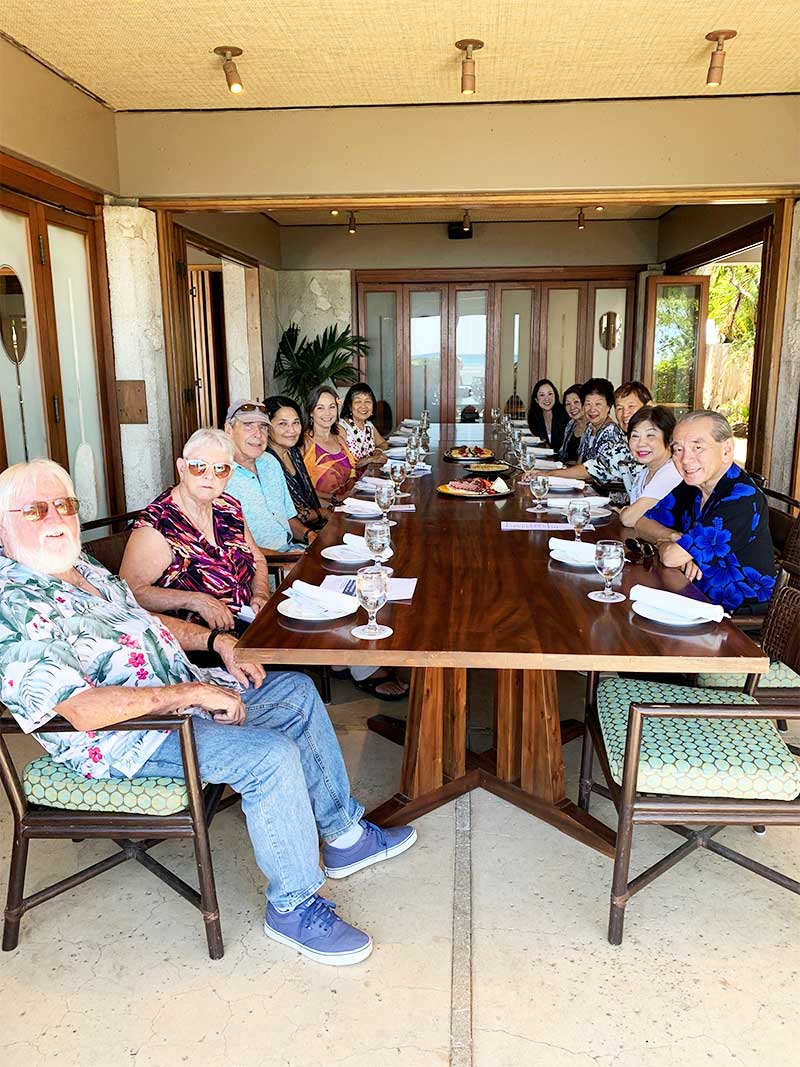 We hosted our first in-person event on June 6 at the Outrigger Canoe Club in Honolulu. It was a smaller gathering, in part because there is continuing anxiety and fear of COVID infections. Despite a smaller group (or perhaps because of it), the conversation around the table was animated and deeply engaged. The photo is of the group minus two who came later.