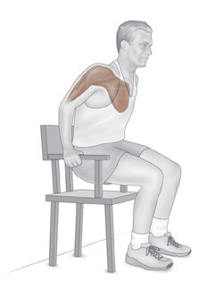 A sturdy chair with armrests and athletic shoes with non-skid soles are all you need for these simple strength building exercises.